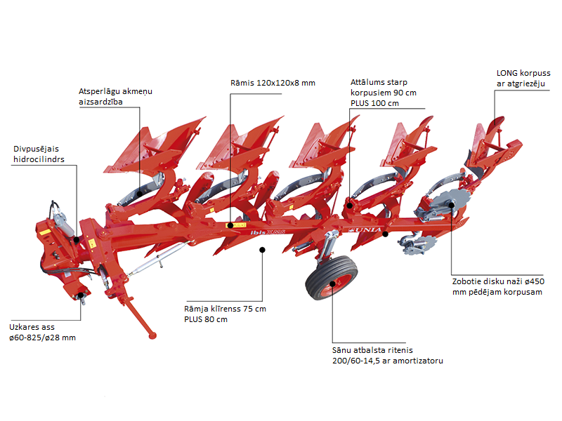 ![]() | LONG korpuss ar atgriezēju Piemērots dažādām augsnēm visos iespējamajos darba apstākļos. Korpusa uzbūve ļauj kārtām klāt platas vagas šķēles zem platajiem mūsdienu traktoru riteņiem, tajā pašā laikā samazina pretestību un nepieciešamo traktora jaudu. |