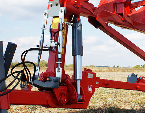 ![]() | Dubultie transporta stāvokļa bloķētāji Maksimālai drošībai transporta laikā arkls ir aprīkots ar diviem bloķētājiem. Transporta pozīcijā neparedzēta rotācija tiek bloķēta ar hidraulisko vārstu un divām atsaitēm, kas noregulē agregātu centrālajā pozīcijā. |