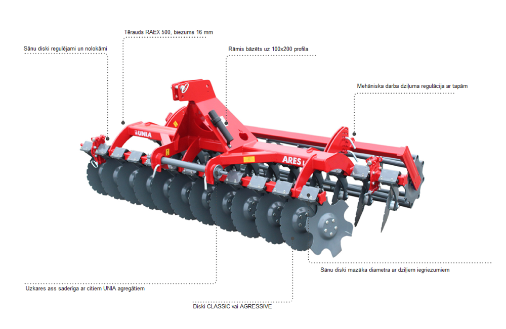 priekšējā atsperzaru šļūces, hidrauliski regulējama, tikai piekabināmā versijā