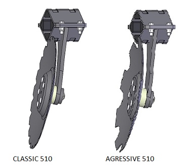 2 rindas ø510/4 mm CLASSIC zoboto disku, aizsardzība ar ø35×160 mm gumijas amortizatoriem