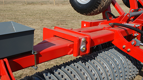 ![]() | VIENMĒRĪGA SPIEDIENA SISTĒMA Pēc agregāta atlocīšanas darba stāvoklī, tiek veidotas divas disku rindas. Ārējie diski tiek stumti uz priekšu un vidējā sekcija tiem seko. Sekciju pozicionēšanas sistēma nodrošina vienādu spiedienu, bez nepieciešamības regulēt dīseles augstumu. |