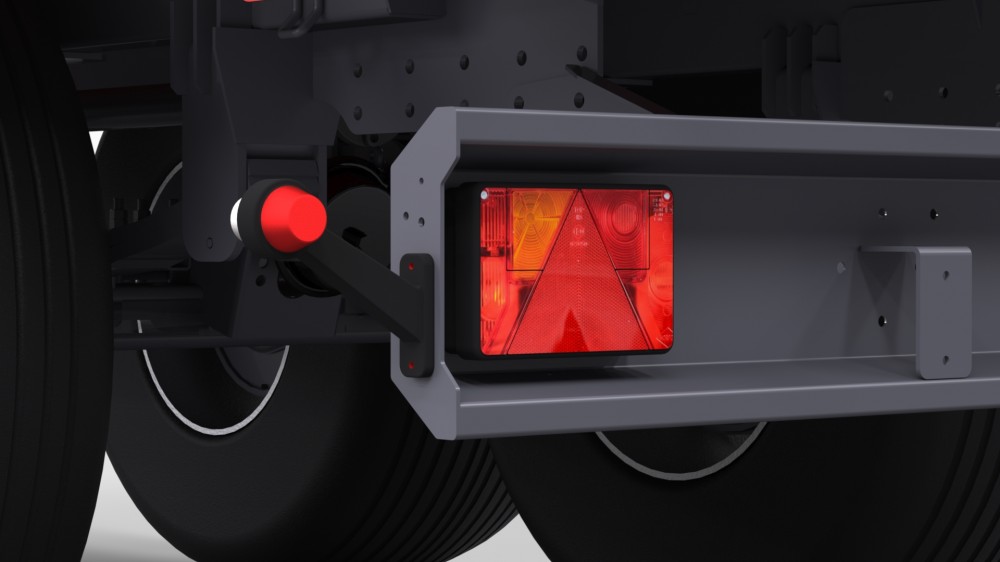 Stāvbremze, divu kontūru pneimatiskās bremzes, dubļusargi, apgaismojums un riteņu ķīļi drošam darbam.