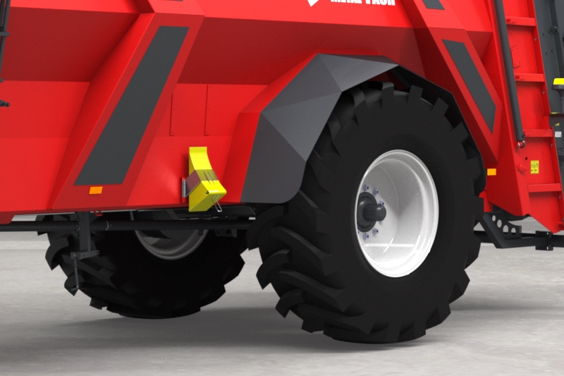 Standarta aprīkojumā uzstādīta mehāniska amortizācija ar garenvirziena atsperlāgām. Hidrauliskā amortizācija ļauj vienkārši nolīmeņot izkliedētāju.