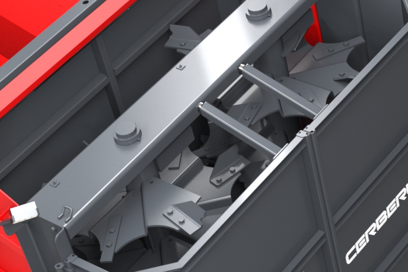 Galvenajam trumulim katrs trešais nazis ir liekts. Naži ir izgatavoti no HARDOX tērauda. Šie naži nodrošina labāku sasmalcināšanu un lielāku darba platumu. Divi 16 mm stieņi ir metināti gar galveno rotora cauruli, paredzēti auklas nogriešanai, kas aptinas rotoriem.