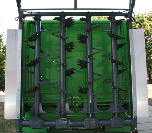 Aprīkots ar četriem rotoriem, kas ir novietoti slīpumā pret agregātu. Nodrošina vienmērīgu izkliedi 6-8 m darba platumā. Naži ir izgatavoti no augstas izturības tērauda un ir maināmi.