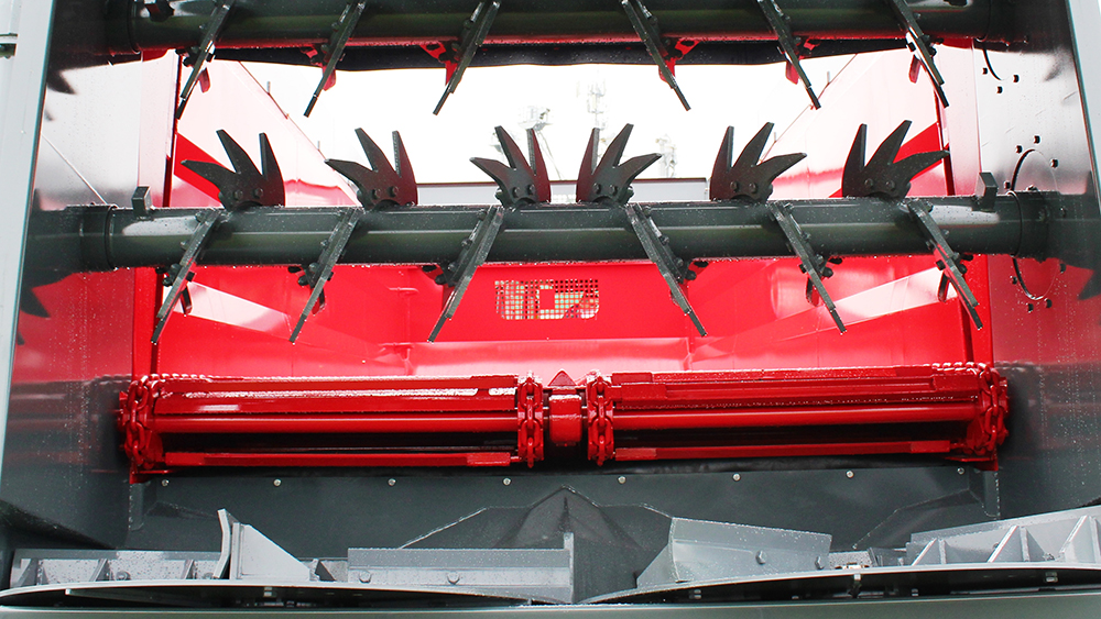 Hidrauliskais aizbīdnis nodrošina plūstošu darbu un vienmērīgu materiāla sadali. Darba sākumā šādi izkliedējamais materiāls nespiež adaptera trumuļus. Aizbīdnis ļauj izkliedētāju izmantot arī kā piekabi zaļajai masai.