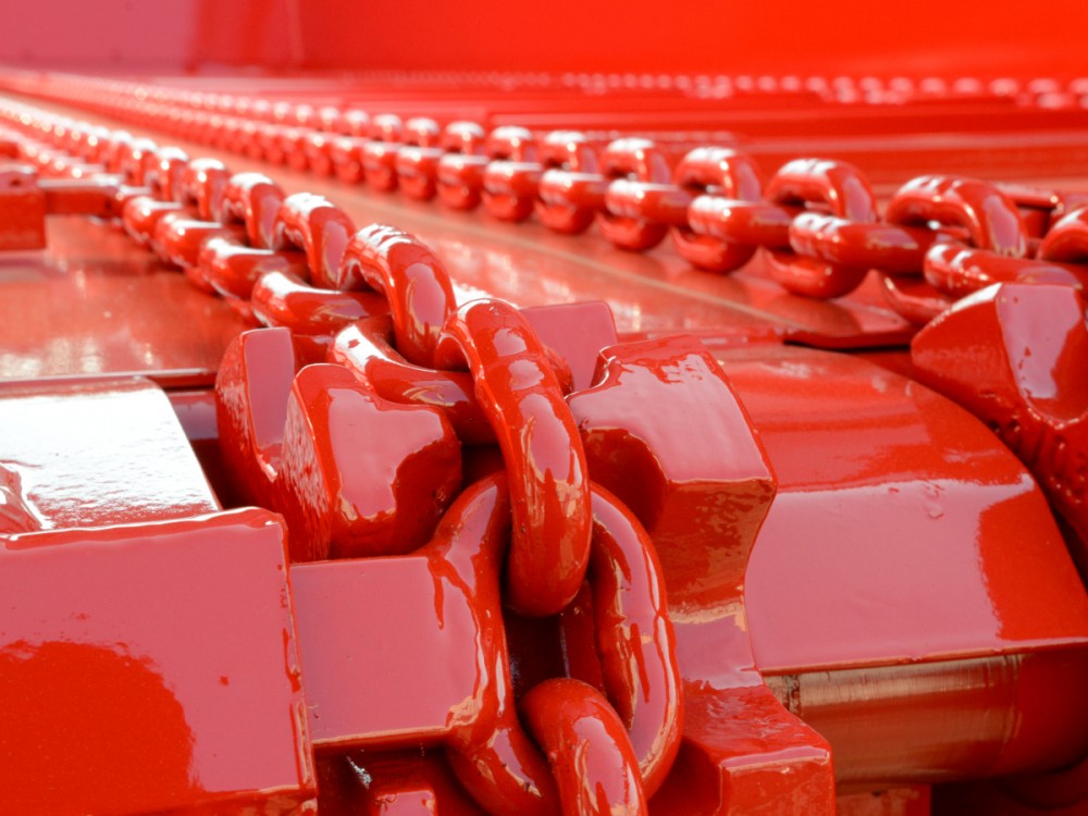 Izturīgs transportieris TYTAN PREMIUM izkliedētāji ir aprīkoti ar 4 ķēdēm. Ķēdes ir ražotas no augstas izturības tērauda stieņiem 11 mm dametrā un saturas kopā ar īpašām līstēm, kas ir piemērotas smagām kravām.